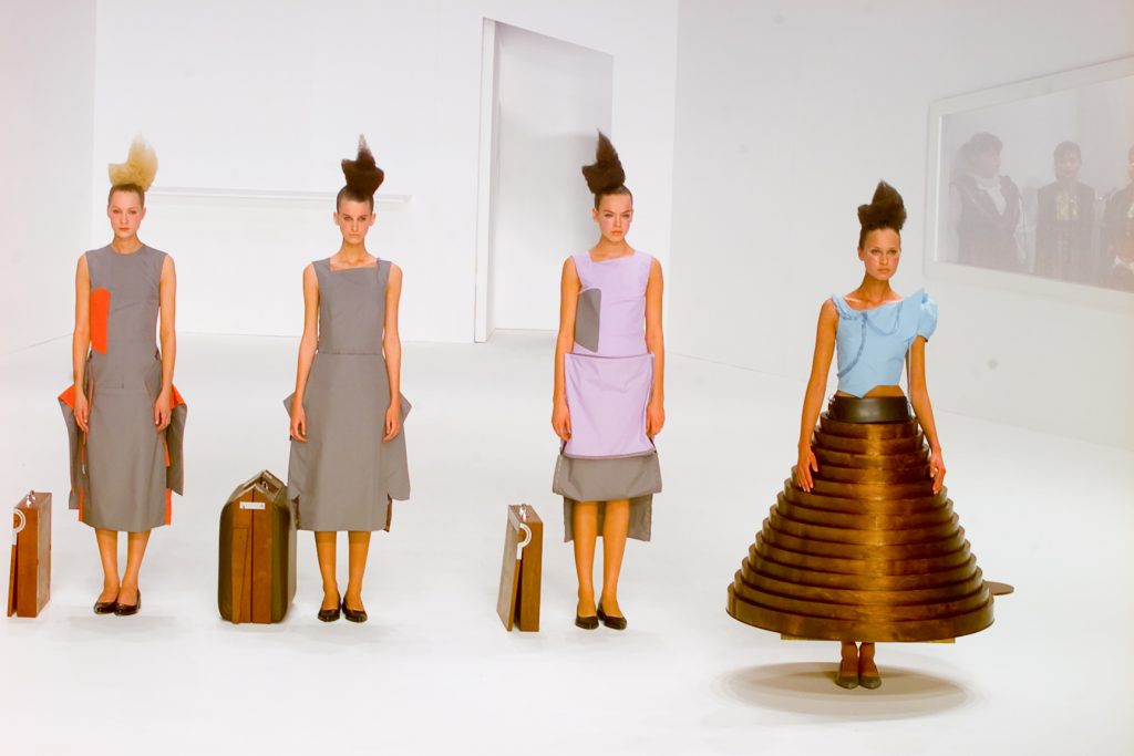 جایی که در ان مدل، صندلی را به لباس و یک میز قهوه را به دامن تبدیل میکند. این نمایش در حقیقت فراتر از مد رفت و به یک قطعه نفس گیر از تئاتر فیزیکی در حق خود تبدیل شد.