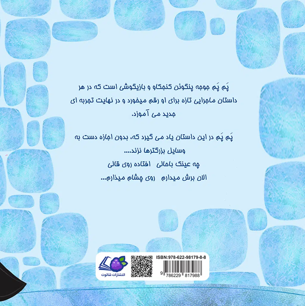 ماجراهای پم پم : پَم پَم جوجه پنگوئن کنجکاو و بازیگوشی است که در هر داستان ماجرایی تازه برای او رقم میخورد و در نهایت تجربه ای جدید می آموزد. پَم پَم در این داستان یاد می گیرد که، بدون اجازه دست به وسایل بزرگترها نزند…. چه عینک باحالی افتاده روی قالی الان برش میدارم ر وی چشام میذارم…